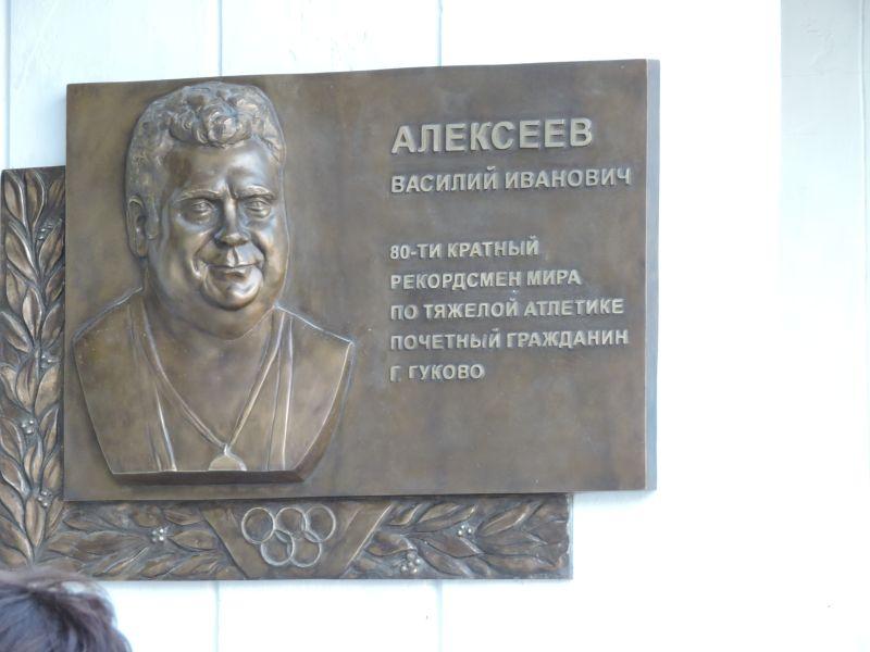 На фасаде у центрального входа Дворца спорта “Шахтер» города Гуково установлена Памятная доска в честь шахтинского прославленного тяжелоатлета Василия Алексеева.