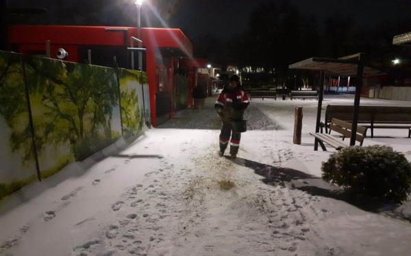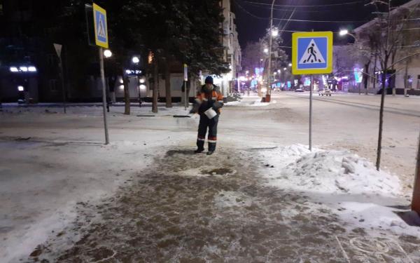 Из-за минусовых температур наблюдается подмерзание дорожного покрытия. Очистка от наледи и посыпка реагентами проводится на пешеходных зонах и тротуарах, а также на спусках и подъемах основных транспортных магистралей.