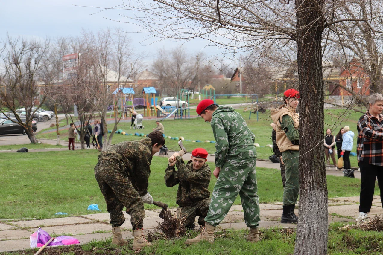 На его уборку вышли и взрослые, и дети, юноши и девушки – больше сотни горожан. Все они в едином порыве активно занимались опиловкой старых веток деревьев, растущих в районе мемориала, убирали мусор, избавлялись от прошлогодней листвы.