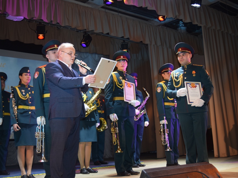 Презентация альманаха началась с выступления военного оркестра десятого отдельного центра подготовки личного состава войск национальной гвардии. Участникам оркестра вручили благодарственное письмо за отзывчивость, неравнодушие и помощь в организации культурно-досуговых мероприятий. Благодарственные письма вручили командиру войсковой части №30-33, полковнику Кириллу Николаевичу Дьяченко, а также Алексею Анатольевичу Зелену, лейтенанту, начальнику оркестра десятого отдельного центра подготовки личного состава войск национальной гвардии. Коллективу оркестра был передан в дар экземпляр литературного сборника «Сплоченные Великою Отчизной».