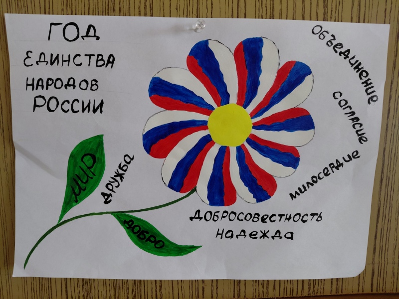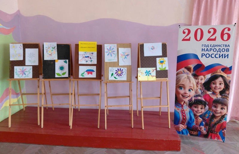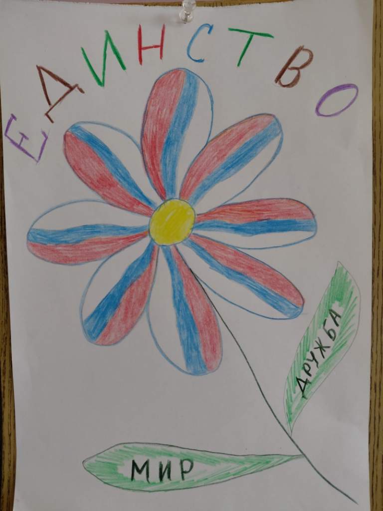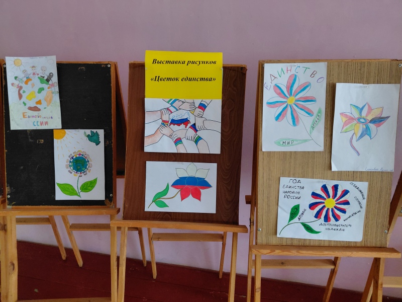 Из работ победителей была оформлена выставка рисунков «Цветок единства».