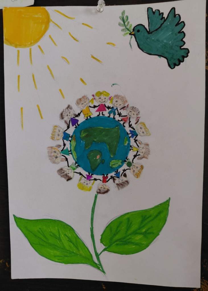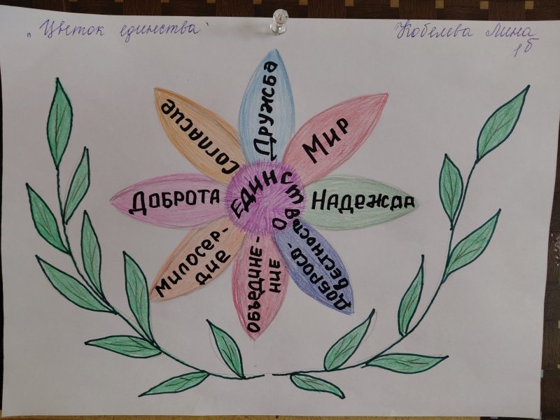Каждая работа — это уникальный лепесток в общем «цветке» нашей страны. Кто-то изобразил крепкое рукопожатие, кто-то — людей в национальных костюмах, а кто-то — сказочный цветок, где каждый лепесток символизирует мир и согласие.