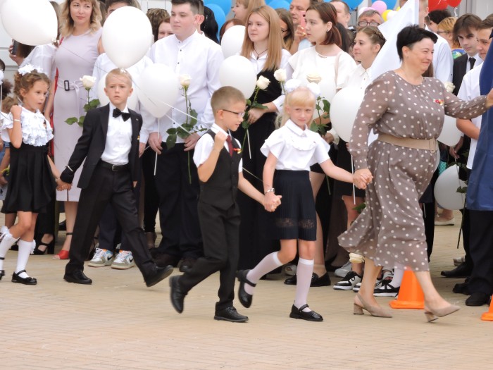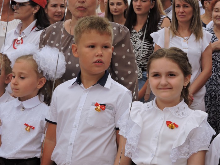 Праздник Дня знаний в школе начался с церемонии поднятия государственного флага. Теперь во всех школах страны каждая учебная неделя будет начинаться с поднятия флага и исполнения гимна России.