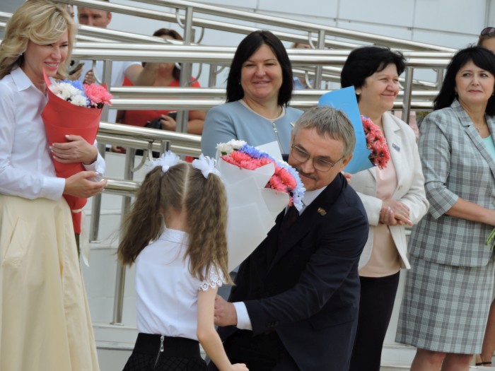 Директор школы Ольга Бакурова показала гостям школу. А завершился праздник Дня знаний открытым уроком с обучающимися 9-го класса, который провел председатель Законодательного Собрания Ростовской области А.В. Ищенко.