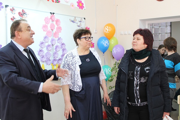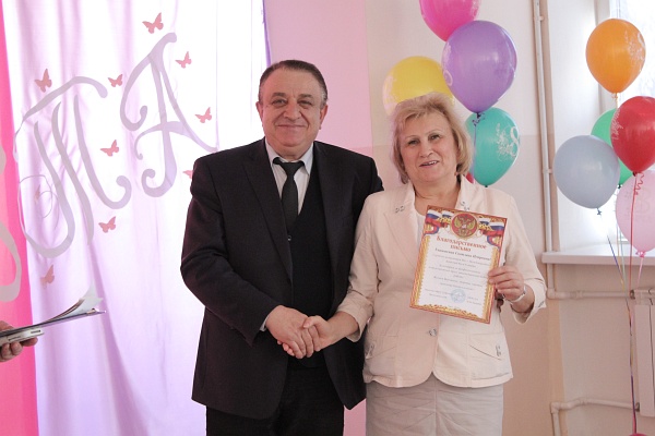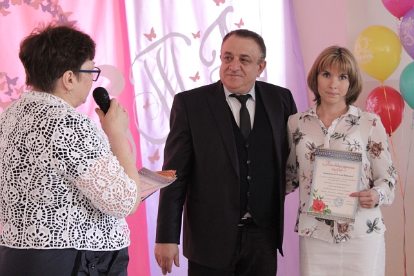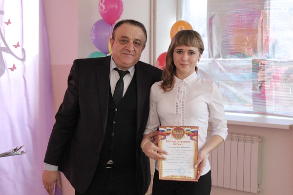 Депутат городской думы Олег Данилов и наш корреспондент поздравили Анастасию и коллектив школы с достижениями. В преддверии главного женского дня, Олег Николаевич наградил ряд выдающихся педагогов и сотрудников школы, в том числе и Анастасию.