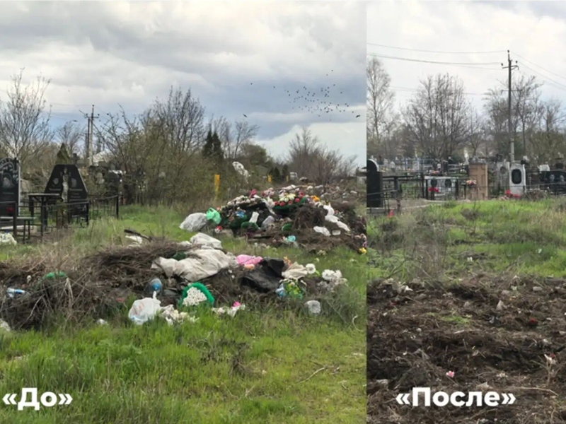 Перед Пасхой на Майском кладбище завершен первый этап уборки — собрано около 300 кубометров мусора, порядка семи свалочных очагов. Это важная работа, ведь сейчас многие жители наводят порядок в местах захоронения своих близких и готовятся к светлому празднику.