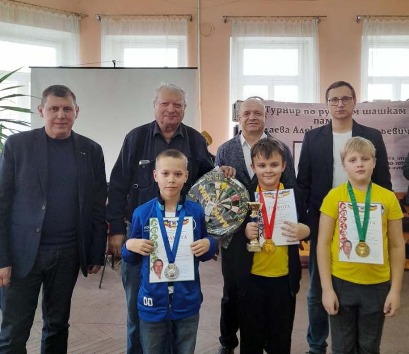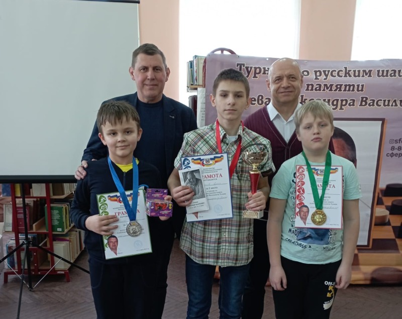 Сначала играли юные спортсмены – «шашечные внуки» Александра Васильевича, ученики его учеников. В турнире среди мальчиков 2015 года рождения и моложе победил Александр Миронюк из Новочеркасска, на втором месте Владислав Мишаков, на третьем – Савелий Алмазов (оба из Шахт).