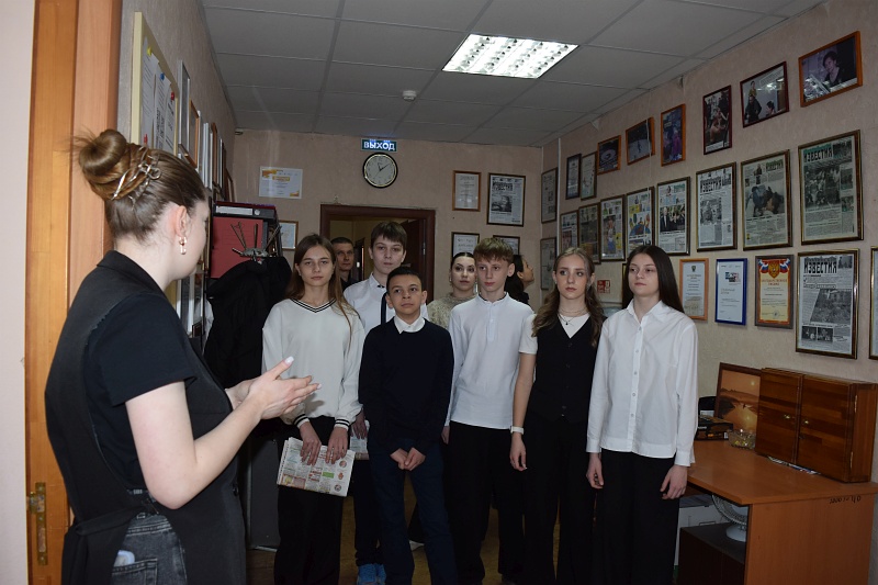 Во время экскурсии по редакции школьникам рассказали о всех этапах создания газеты: как собирается материал для будущих статей, как текст создается и появляется на газетной полосе, как свежий выпуск газеты печатается в типографии.