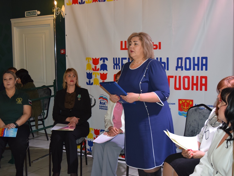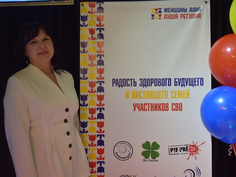 Руководитель местного отделения Комитета семей воинов Отечества в городе Шахты Александра Александровна Безсмертная рассказала о поездках «за ленточку». Она подняла тему «Женщины, поддерживающие героев». Саша как никто другой знает, как трудно приходится бойцам, ведь у нее на СВО воюет муж и два брата.