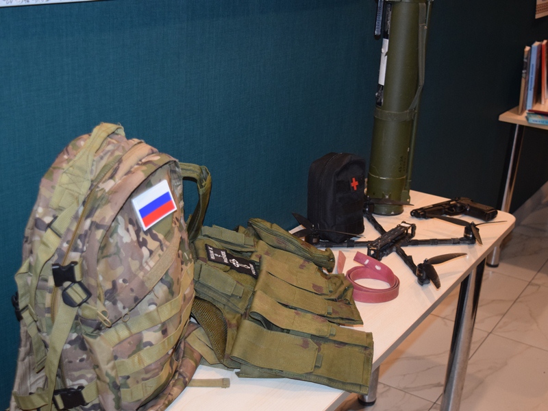 В конце работы площадки участницы форума сделали общую фотографию. А в фойе банкет-холла «Хрустальный» была устроена выставка боевых трофеев, которые привезли из зоны СВО.