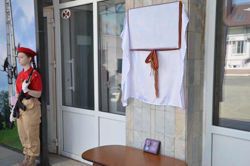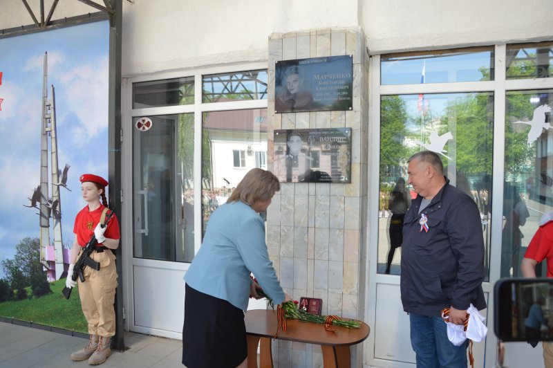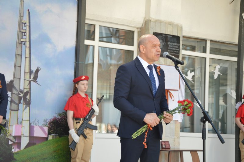 Память героя почтили минутой молчания. В знак признательности и благодарности за подвиг к мемориальной доске возложили живые цветы.