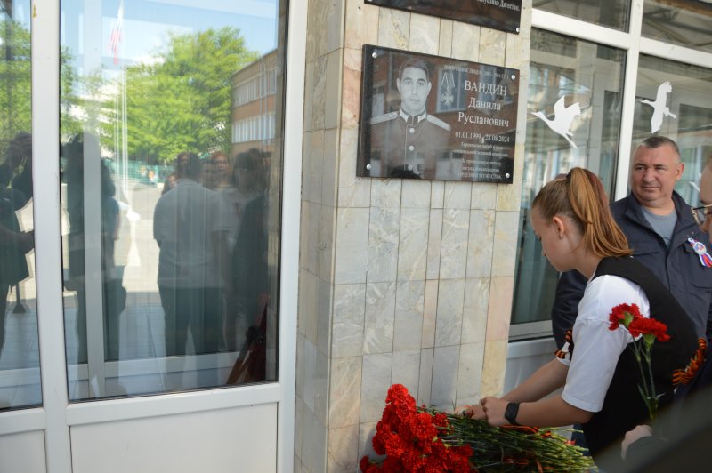 – В Год защитника Отечества и в преддверии 80-летия Великой Победы мы открываем доску выпускнику лицея №3 Даниле Вандину. Он был очень активным мальчиком, занимался спортом. Окончив лицей, отслужил срочную службу. А когда наша страна столкнулась с новыми вызовами, Данила встал на ее защиту. Рискуя жизнью, он выполнял свой воинский долг, и в августе 2024 года погиб. Данила получил хорошее воспитание в своей семье, в лицее. Я преклоняюсь перед родителями: ваш сын – герой. Им гордится родной лицей и весь город Шахты. Мы всегда будем помнить ребят – защитников нашей страны, – подчеркнула Л.В. Овчиева.
