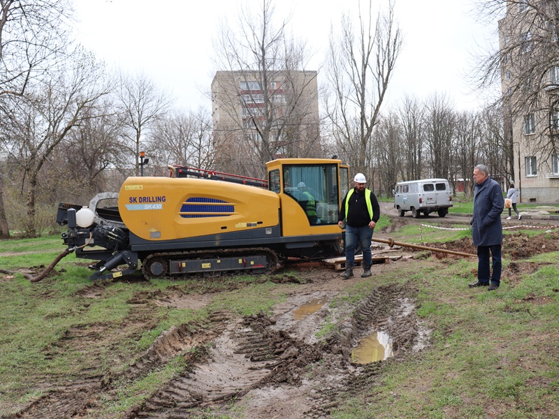 Проведение работ осложнялось плотной застройкой района, наличием деревьев, а также тем, что коллектор залегает на большой глубине – 9 метров, при проведении работ обнаружился скальный грунт, было принято решение о проведении горизонтального бурения.