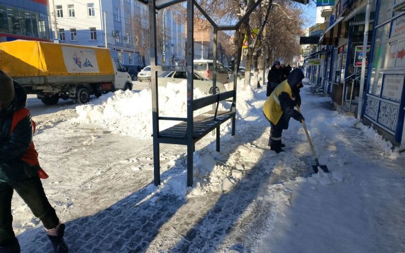 Очистка тротуаров от снега: ул. Советская от пр. Карла Маркса до пр. Чернокозова;