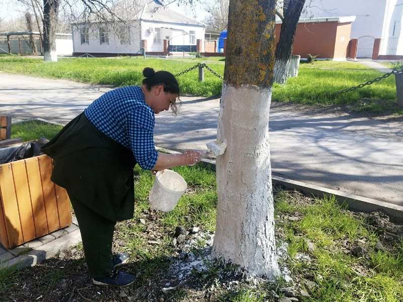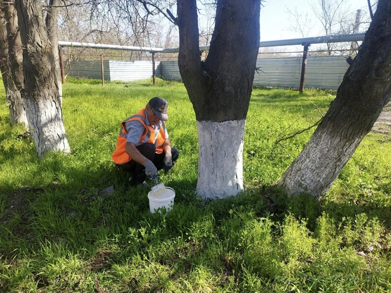 Только в поселке Майский уже побелено 1350 деревьев, на Нежданной — 310, а с предыдущей недели к этому числу добавилось ещё 221 дерево на бульваре Аллейный.