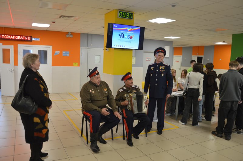 Интерактивная станция «Первые в казачьей станице», подготовленная «Движением первых», позволила участникам проверить знания о культуре и истории казачества в формате викторины с традиционными казачьими песнями.