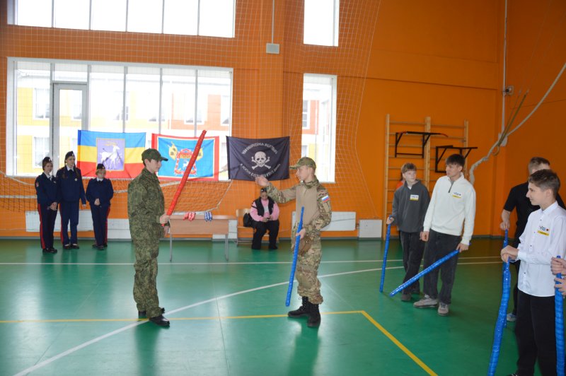 На станции «Казачий дух», организованной ШГКО «Александровск-Грушевское» и ККПЦ «Дончак», ребята осваивали фланкировку, участвовали в эстафетах и знакомились с макетами оружия.