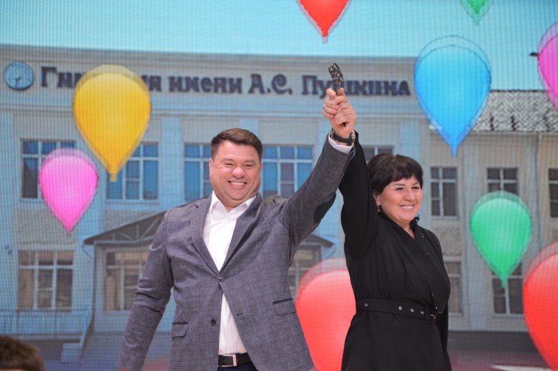 В знак открытия образовательного учреждения Александр Мулява, генеральный директор компании «Южтрубопроводстрой», выполнявшей работы по капитальному ремонту, передал Л.И.Деминой символический ключ от гимназии.