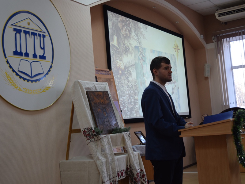 Накануне празднования Рождества Христова сотрудники кафедры «Православной культуры и теологии» при поддержке городской думы города Шахты, а также Шахтинского городского отделения Всероссийского общественного движения «Волонтеры культуры» и Ростовского отделения Международной общественной организации «Императорское Православное Палестинское Общество» организовало и провело 24 декабря в зале заседаний Ученого совета института мероприятие под названием «Донское Рождество: история и смыслы православных праздничных традиций», посвященное грядущему празднику.