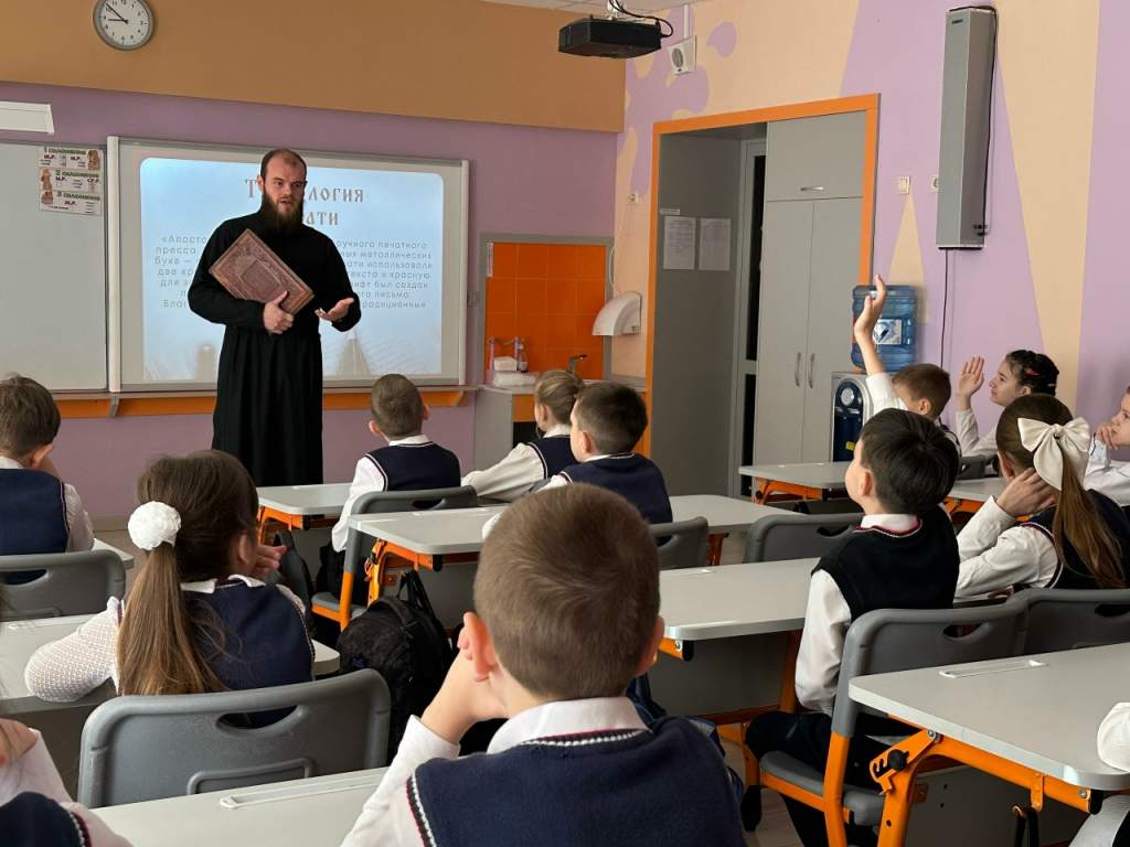 Как рассказали в школе № 38, диакон Никита Осипов, руководитель отдела культуры Шахтинской епархии, рассказал ребятам о Дне первой печатной книги.