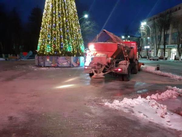 В течение прошедшей ночи обрабатывались основные проезды. Пешеходные зоны посыпаются вручную.