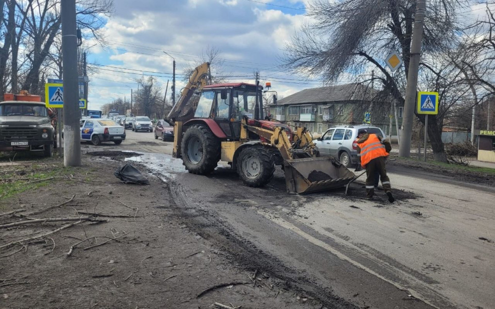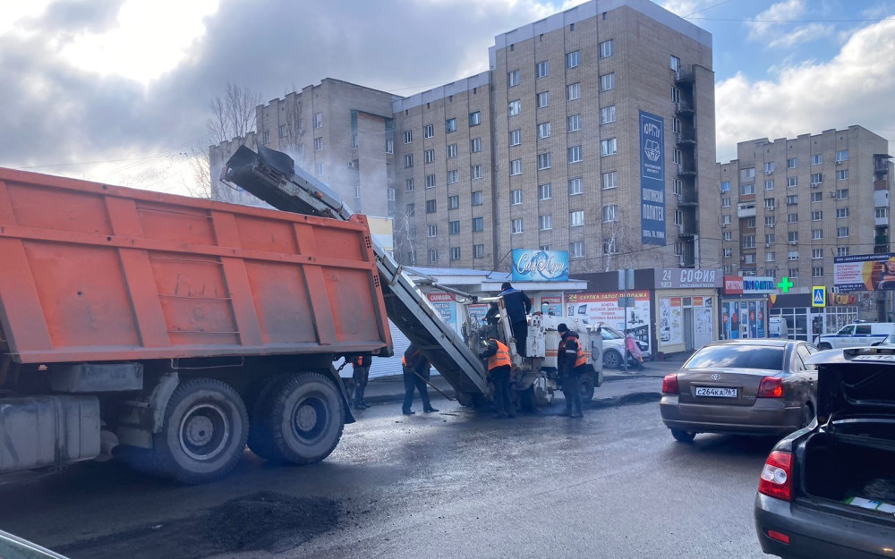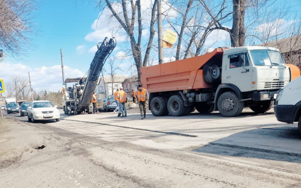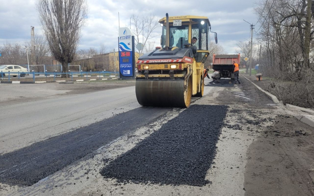 Устройство асфальтобетонного покрытия на ранее отфрезерованных участках дороги с дефектами дорожного покрытия выполнялось на ул. Ведомственная и ул. Мировая Коммуна.