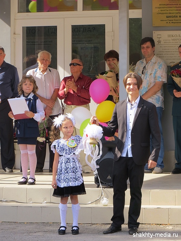 На торжественной линейке, посвященной началу учебного года присутствовали почетные гости: Антон Кипшидзе, заместитель начальника отдела взаимодействия с федеральными структурами и казачеством администрации г.Шахты, Константин Пилюкпасиди, председатель Совета старейшин г.Шахты, Алексей Мигуцкий, заместитель командира в/ч 3722, Виктория Мартыненко, заместитель директора по основной деятельности Центра архивных документов, Александр Зубков, начальник отдела информации Центра архивных документов, Михаил Положевец, председатель Совета школы. Они поздравили школьников с 1 сентября.