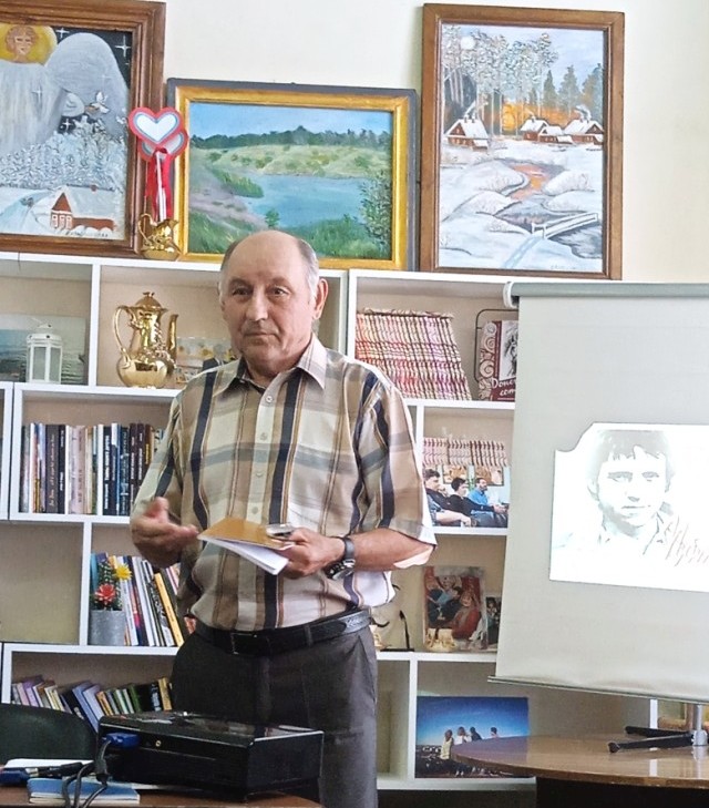 Татьяна Листопадова подготовила презентацию из семейных фотографий поэта, его ролей в театре и кино, роликов с песнями самого барда, которые участники мероприятия ещё раз с большим удовольствием посмотрели, узнав и много нового и интересного из творчества поэта. И, конечно, все слушали песни Высоцкого, которые современны и сегодня.