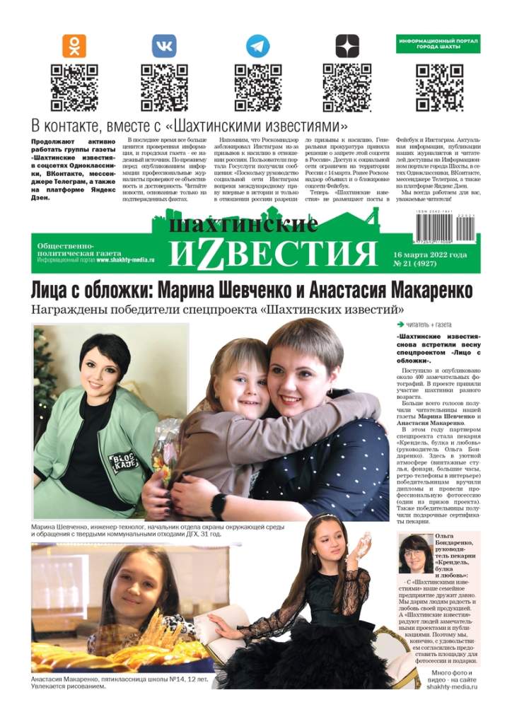 Конкурс традиционно даёт шанс каждой женщине стать героиней весеннего выпуска газеты — победительница украсит обложку «Шахтинских известий»!