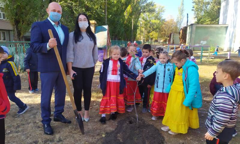 В рамках мероприятия депутат Шахтинской городской Думы по 9-му округу К.Н.Чередниченко посадил на территории детского сада три саженца рябины.