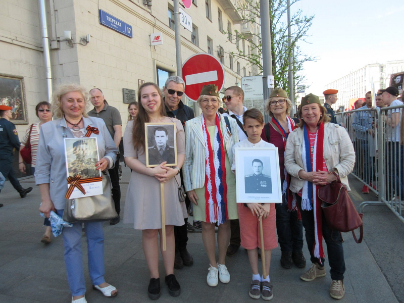 Марш был, конечно, самым большим событием, кульминацией, как говорили многие. Трое из нас несли портреты своих найденных отцов, двое – таблички, что мы еще ищем. К Монике приехали ее русские родственники: вместе с племянниками и внуками получилось шесть человек. К Татьяне присоединилась ее сестра из Смоленска. Все вместе мы составили замечательную компанию. Самое сложное было – не потерять друг друга в толпе! Мы были частью колонны в более чем один миллион человек, которая двигалась к Красной площади. Все эти люди хотели, чтобы не были забыты их близкие, которые боролись за победу. Впечатления неописуемые, грандиозные! Когда колонна проходила по Красной площади мимо трибун с немногочисленными оставшимися в живых ветеранами, все кричали: «Спасибо!».