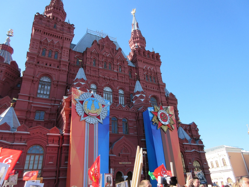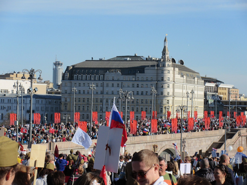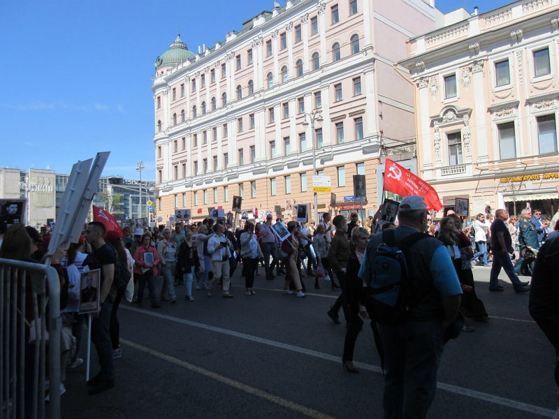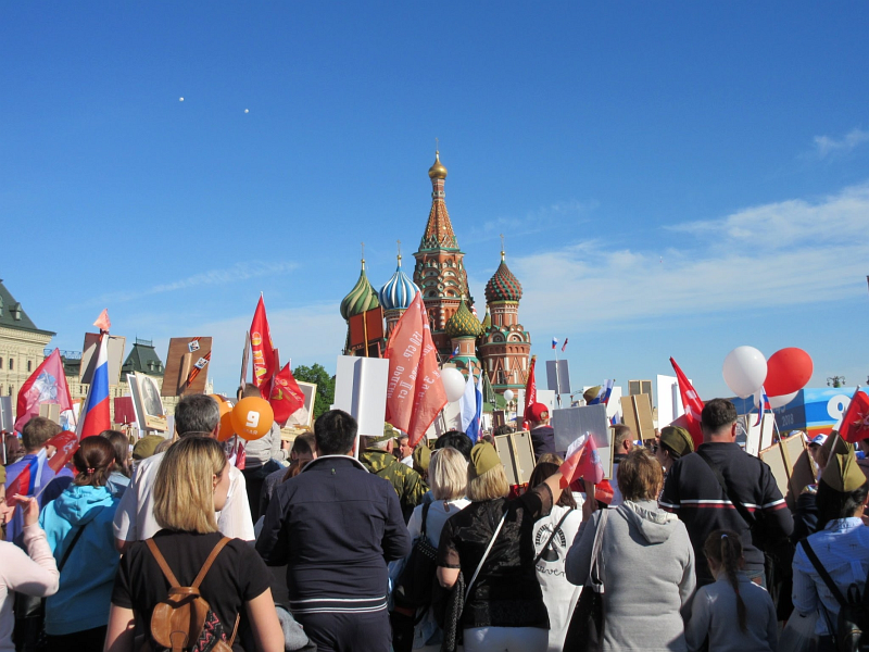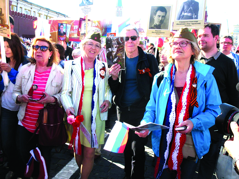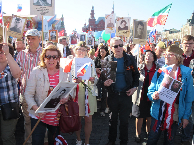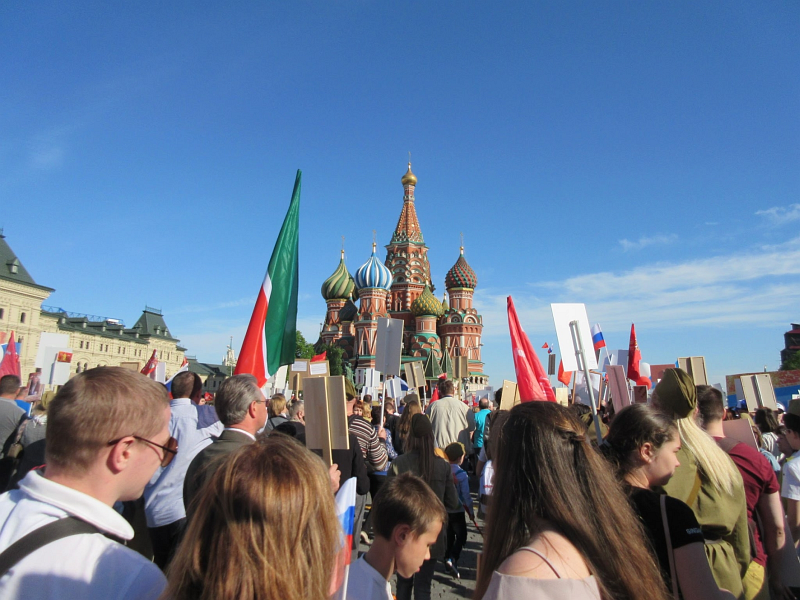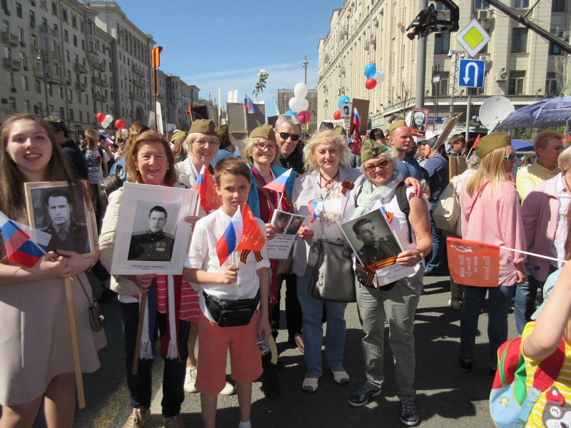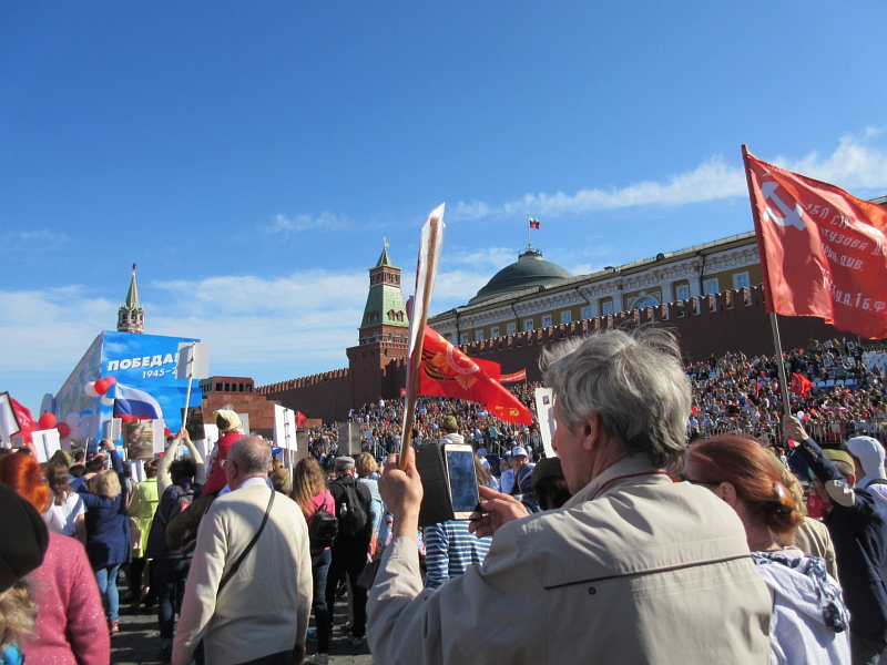 Марш был, конечно, самым большим событием, кульминацией, как говорили многие. Мы были частью колонны в более чем один миллион человек, которая двигалась к Красной площади. Когда колонна проходила по Красной площади мимо трибун с немногочисленными оставшимися в живых ветеранами, все кричали: «Спасибо!».