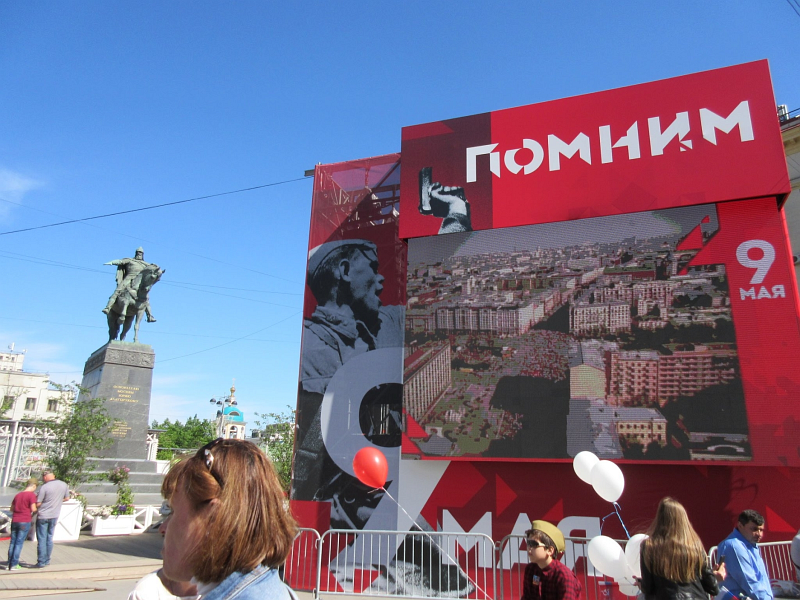 Марш был, конечно, самым большим событием, кульминацией, как говорили многие. Мы были частью колонны в более чем один миллион человек, которая двигалась к Красной площади. Когда колонна проходила по Красной площади мимо трибун с немногочисленными оставшимися в живых ветеранами, все кричали: «Спасибо!».