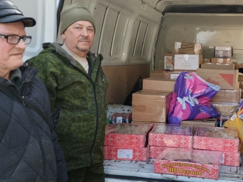 Жители города передали бойцам одежду, продукты и сладости.