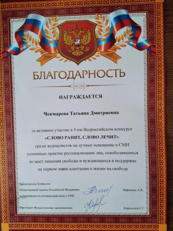 – Выражаю Вам глубокую признательность за неравнодушие и внимание к освещению проблем адаптации граждан, отбывших установленный судом срок уголовного наказания, к жизни на свободе, а также благодарность за интересные и познавательные материалы на эту тему, за попытку рассказать людям, что осужденные, не смотря на совершенную ошибку, после освобождения остаются частью нашего общества и от того, как мы будем к ним относиться, зависит пойдут ли они на повторные преступления, а в итоге скажется на нашем качестве жизни, – говорится в обращении президента фонда С.Г. Кирильчука к журналистам.