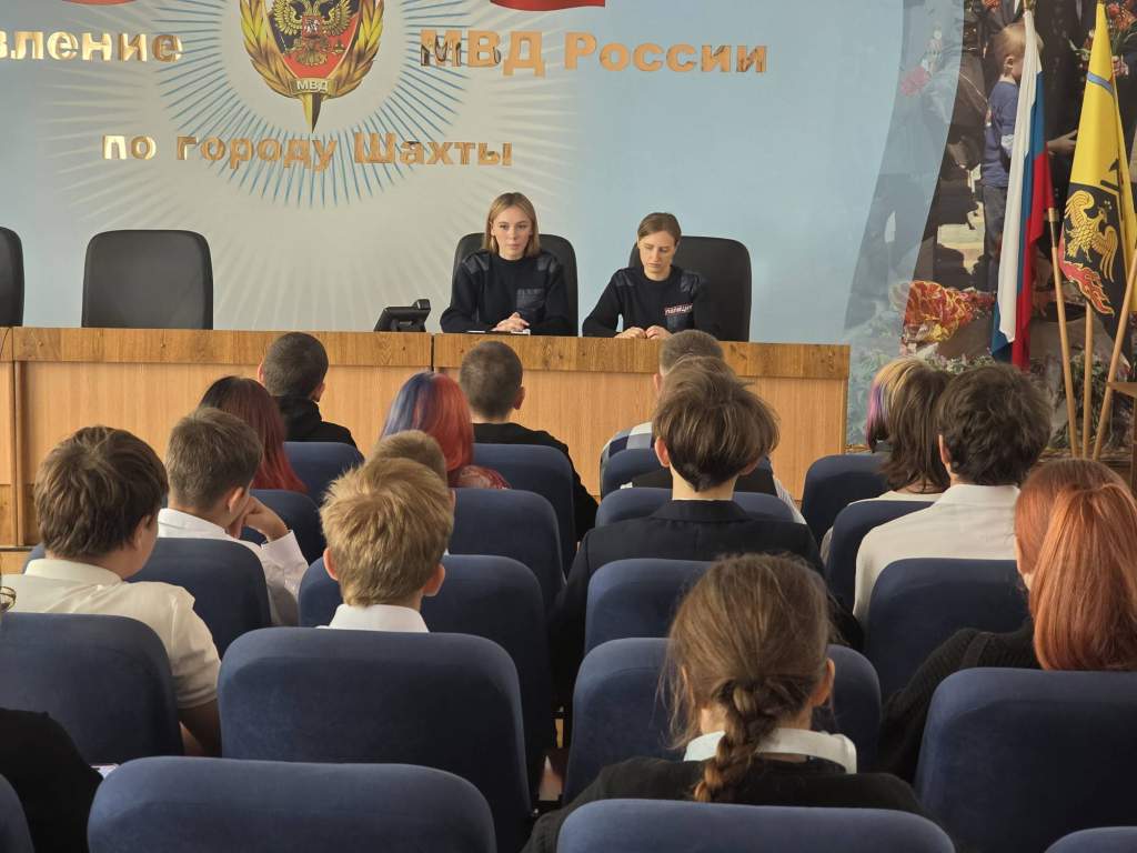 Ученики полицейских классов МБОУ СОШ № 40 города Шахты посетили городское УМВД России. Школьников встретили сотрудники отдела по работе с личным составом, отделения по делам несовершеннолетних и отдела по контролю за оборотом наркотиков.
